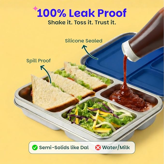 - Food-Safe & Durable Materials: Made with premium food-grade 304 stainless steel and BPA-free, FDA-approved silicone, this tiffin box is built for daily use – safe, non-toxic, and rust-resistant.