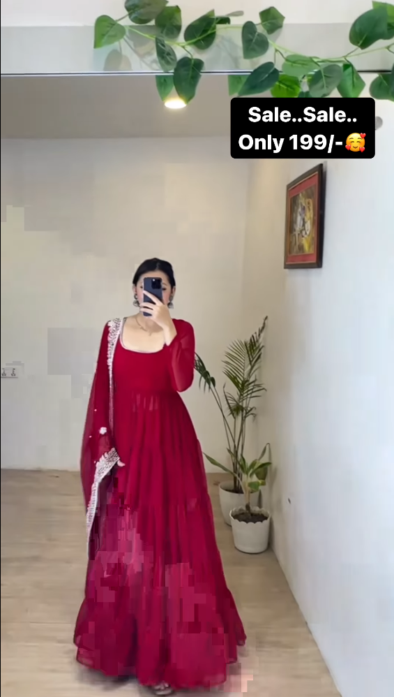 Dark Red Ruffle Design Anarkali GownDark Red Ruffle Design Anarkali Gown