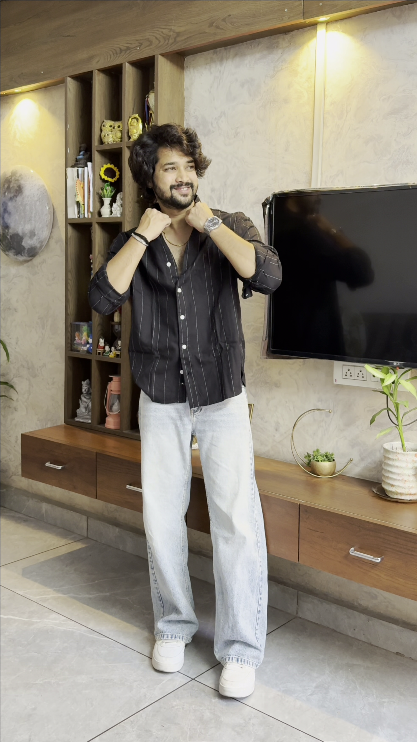 The Layered Edge: Wear it fully unbuttoned over a white graphic tee and silver chains for a classic, effortless street-style aesthetic.
