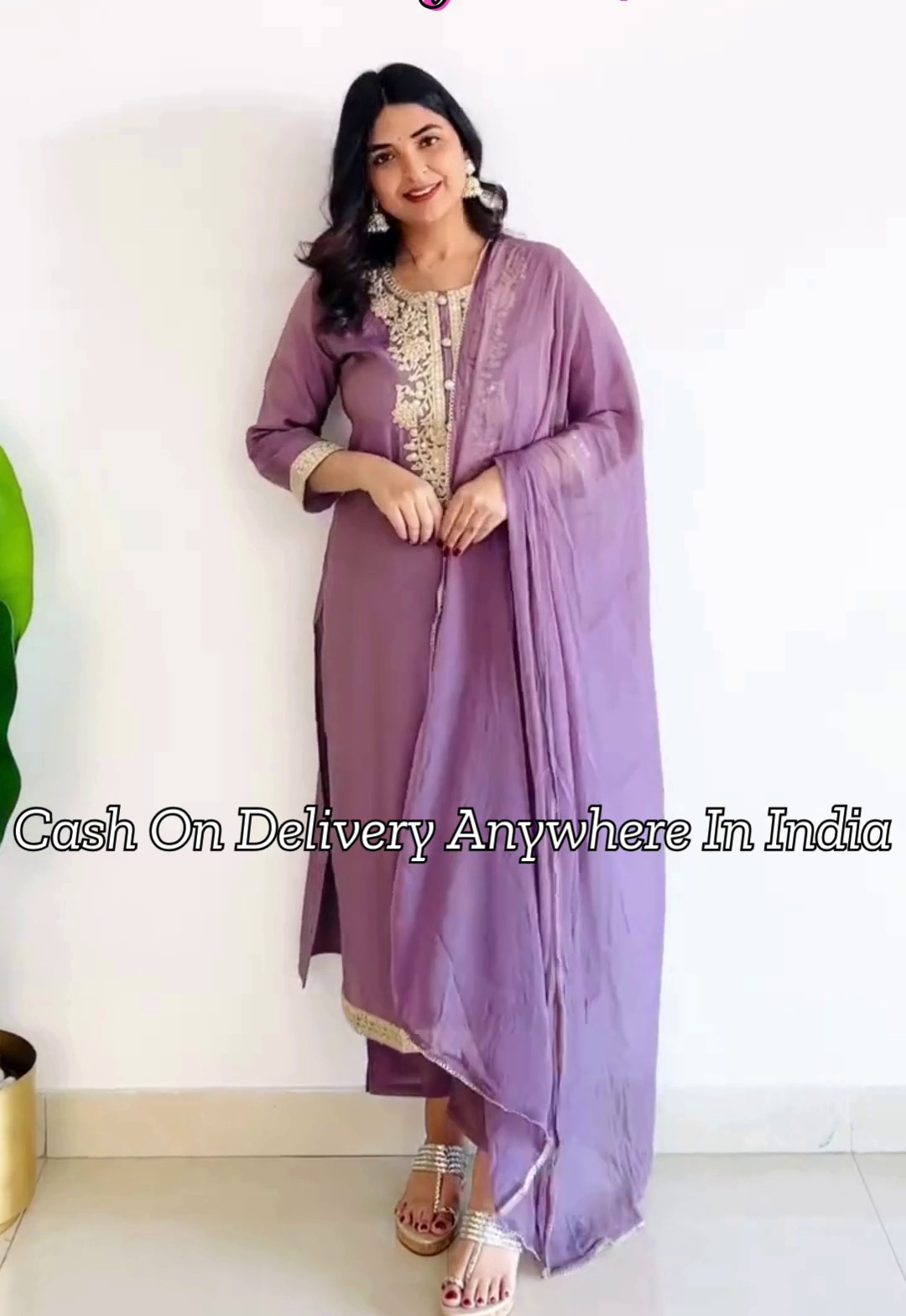 Be the first to review “Purple Ethnic Motifs Embroidered Panelled Kurta With Trousers & Dupatta”