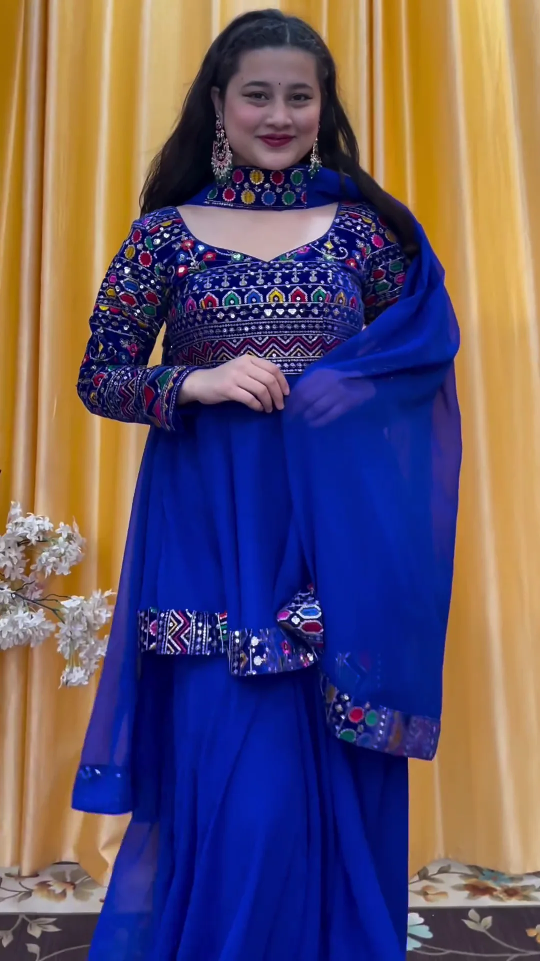 Royal Blue Top Palazzo Set With Dupatta in Georgette with Embroidery Trending Dress