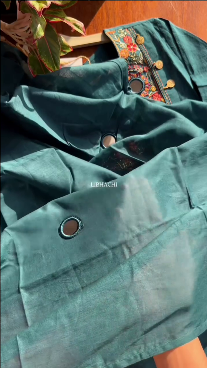 Be the first to review “Women Green Embroidered Mirror Work Pure Cotton Kurta With Trousers”