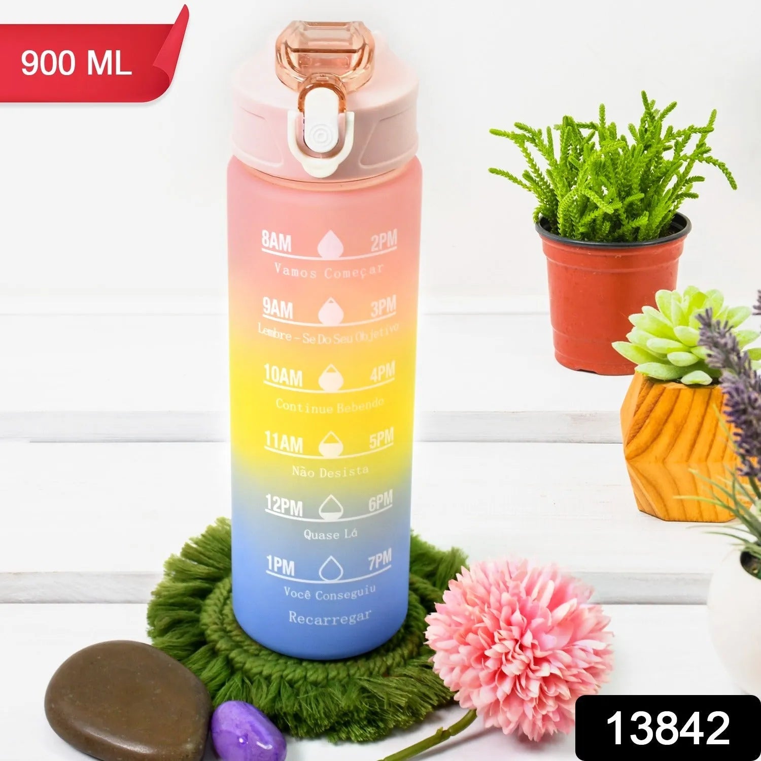 Plastic Colorful Motivational Water Bottle With Straw (900 Ml)